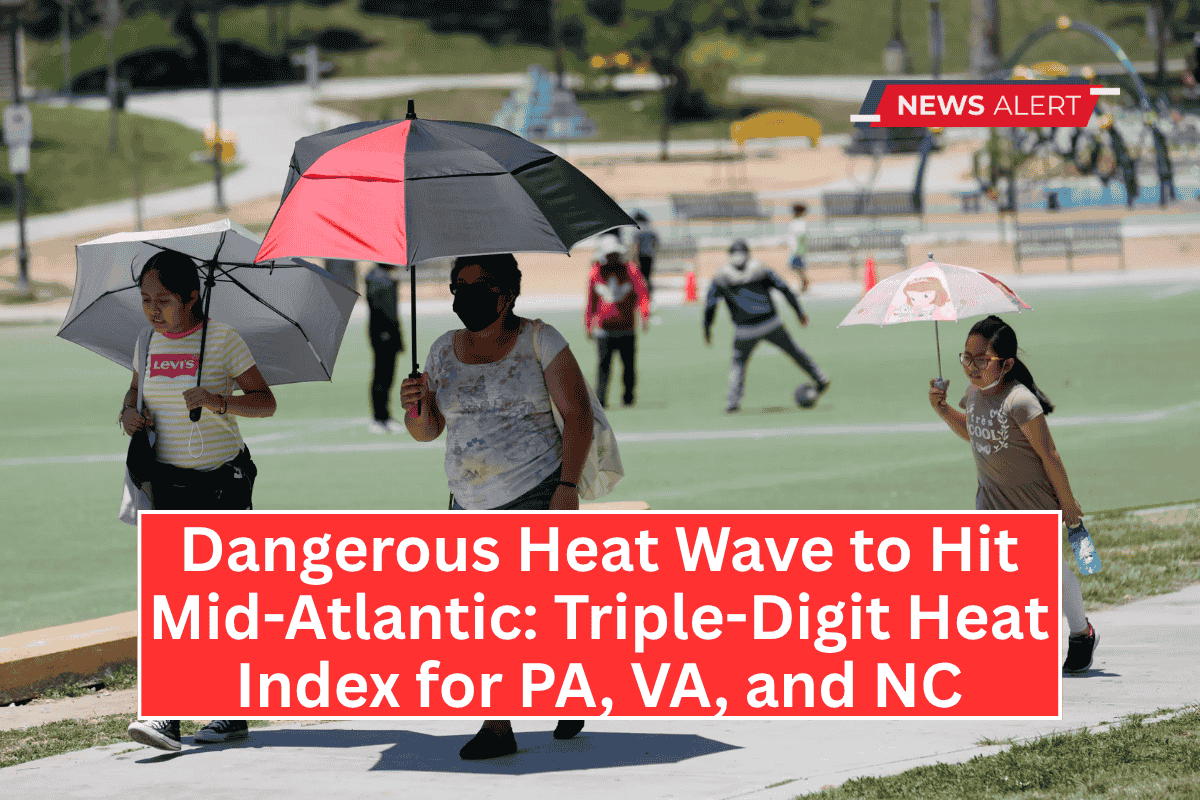 A dangerous heat wave is set to impact the Mid-Atlantic starting Monday, June 24, with Pennsylvania, Virginia, and North Carolina experiencing heat index values exceeding 100°F through much of next week.